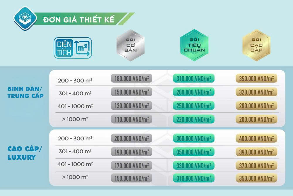 Bảng giá thiết kế – Phân khúc Cao cấp / Luxury
