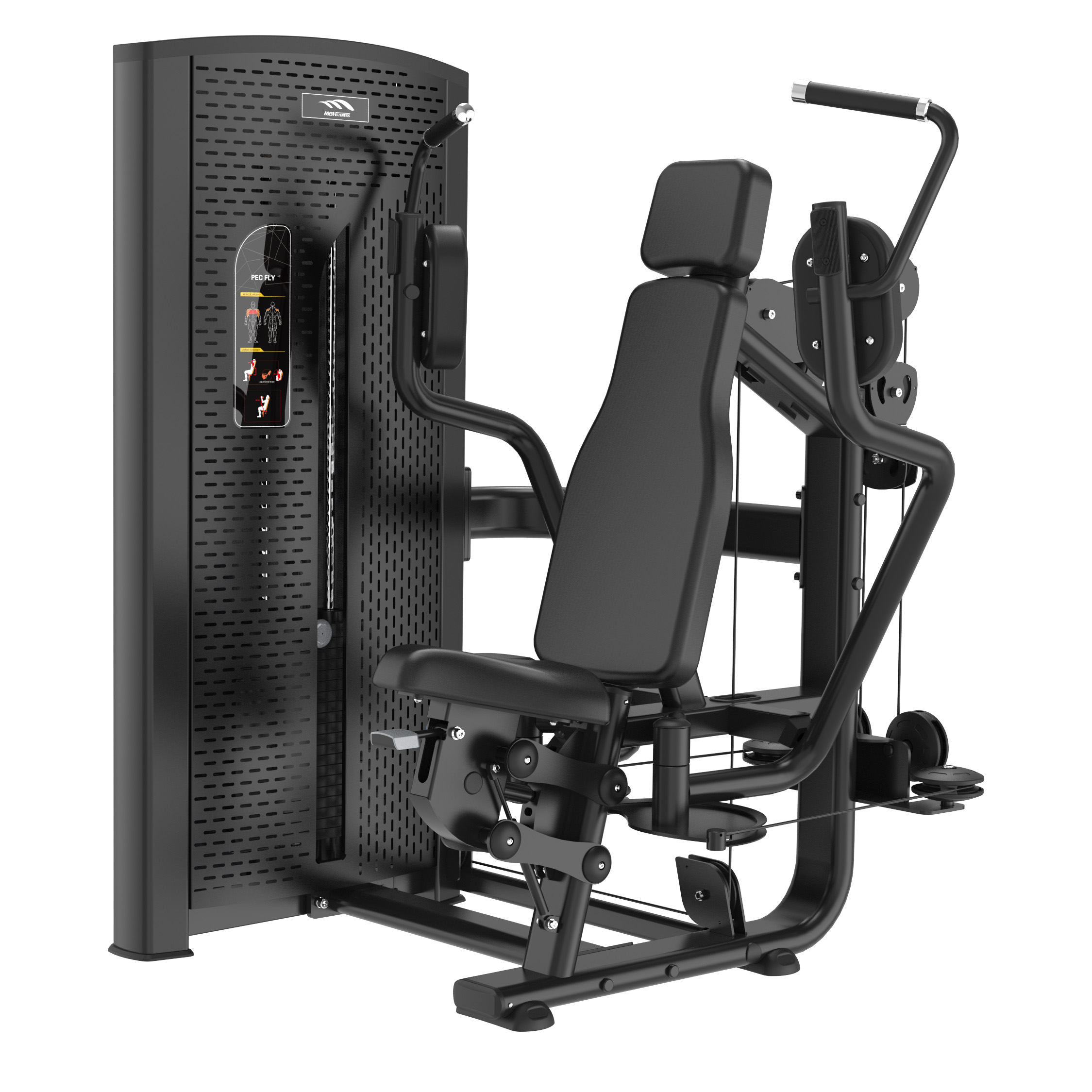 Máy ép ngực/bay vai M10U-002A là một trong những thiết bị được trang bị và sử dụng phổ biến trong các phòng tập thể hình. Đây thường là một thiết bị tập thể dục có trọng lượng, trong đó người tập sử dụng tay hoặc cánh tay để đẩy hoặc kéo một phần trọng lượng hoặc vật khối đối trọng.