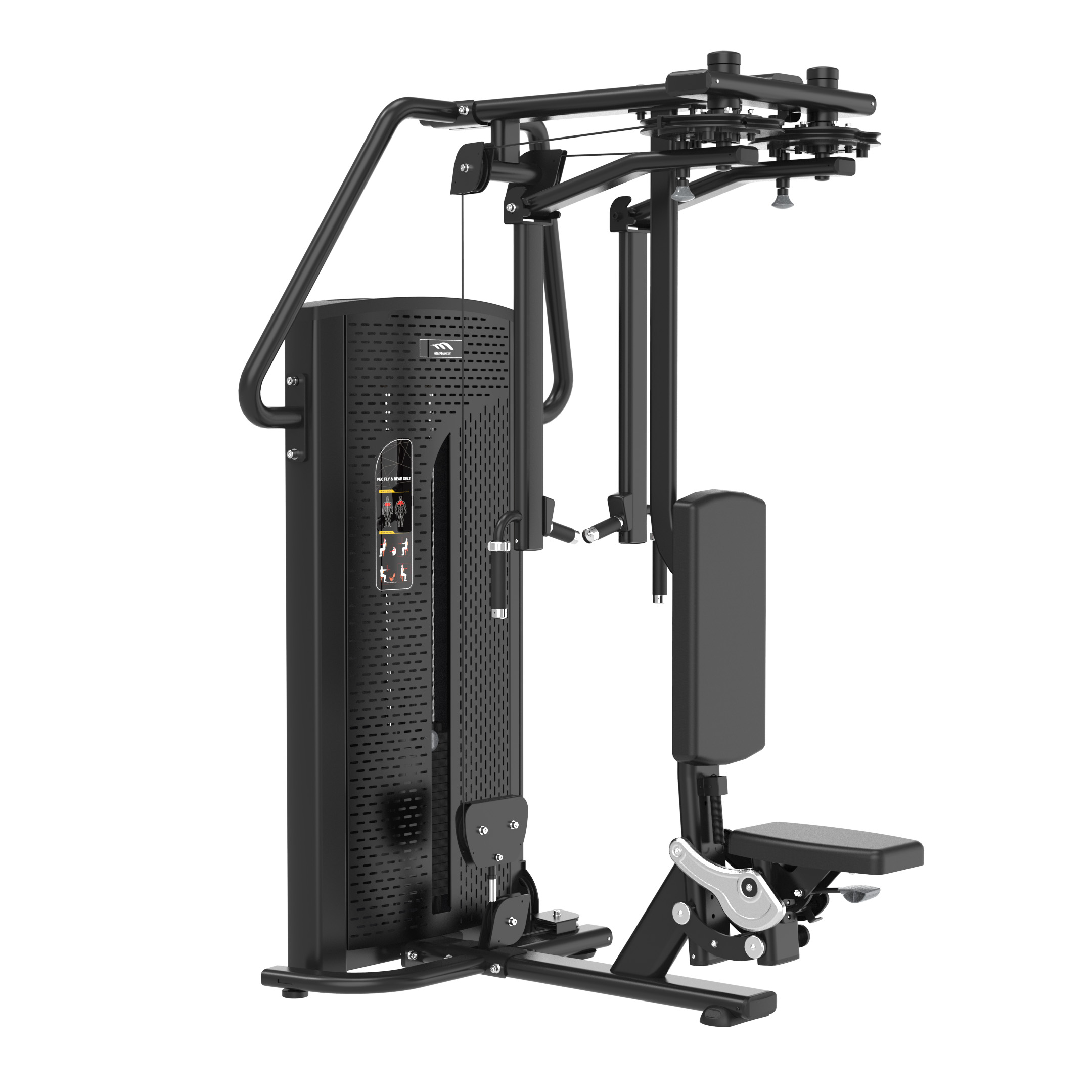 Máy ép ngực/bay vai M10U-002A là một trong những thiết bị được trang bị và sử dụng phổ biến trong các phòng tập thể hình. Đây thường là một thiết bị tập thể dục có trọng lượng, trong đó người tập sử dụng tay hoặc cánh tay để đẩy hoặc kéo một phần trọng lượng hoặc vật khối đối trọng.